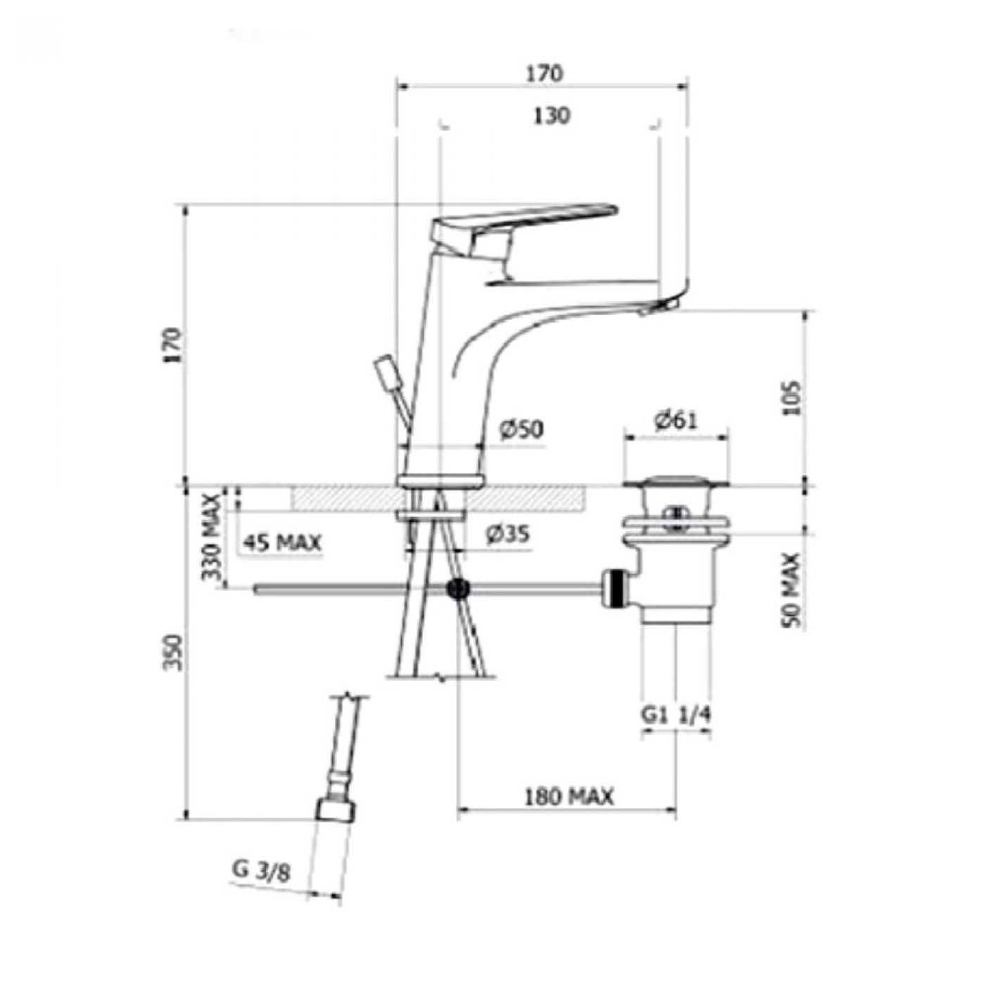 Μπαταρία νιπτήρος Arte της Ottone Meloda ψηλή με βαλβίδα νιπτήρος.
