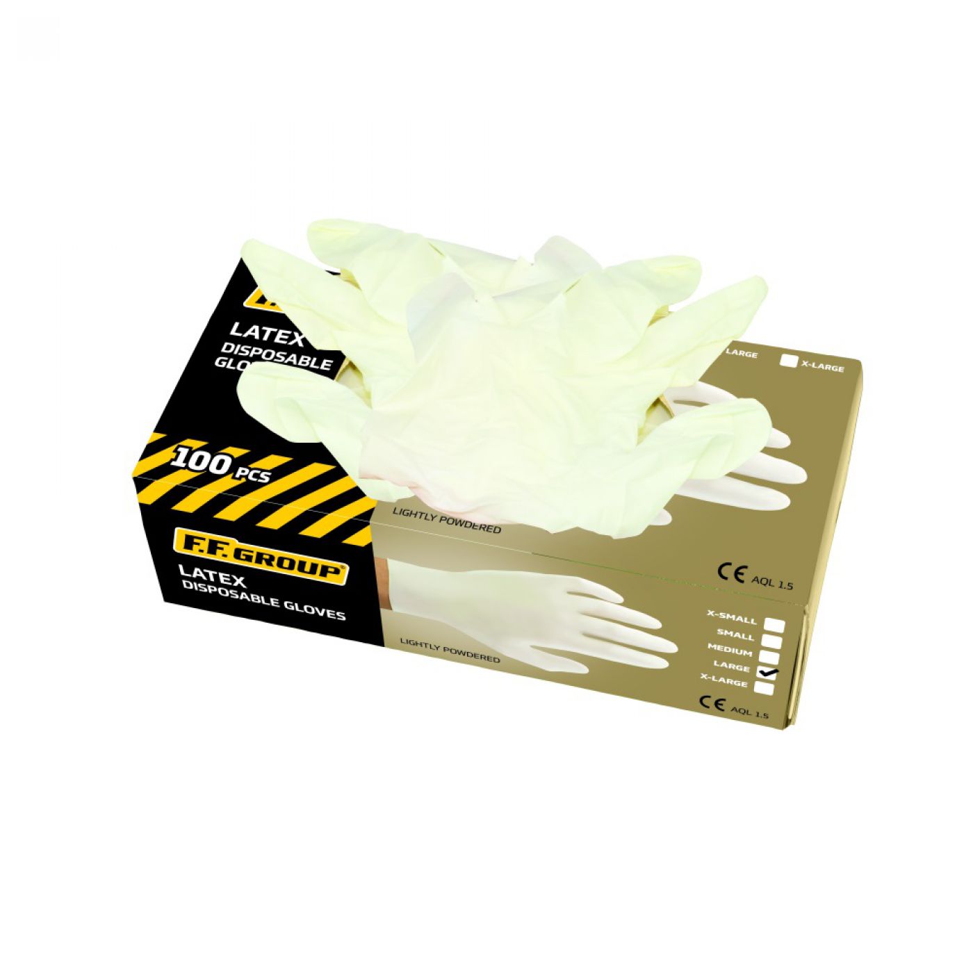 Γάντια της FF Group από φυσικό latex, μέγεθος medium, 100 τεμάχια.