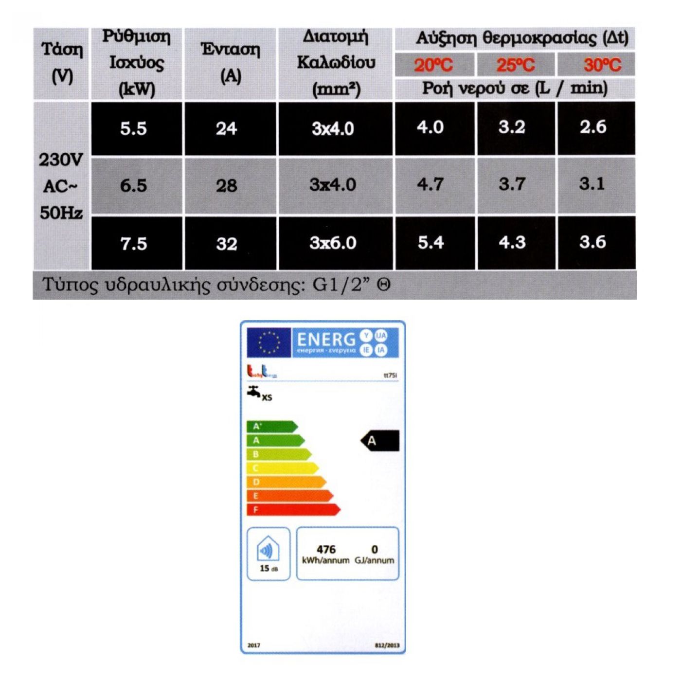 Ταχυθερμαντήρας νερού TachyTherm tt75i inverter μονοφασικός 7,5kw, 3 σε 1 Smart Power.