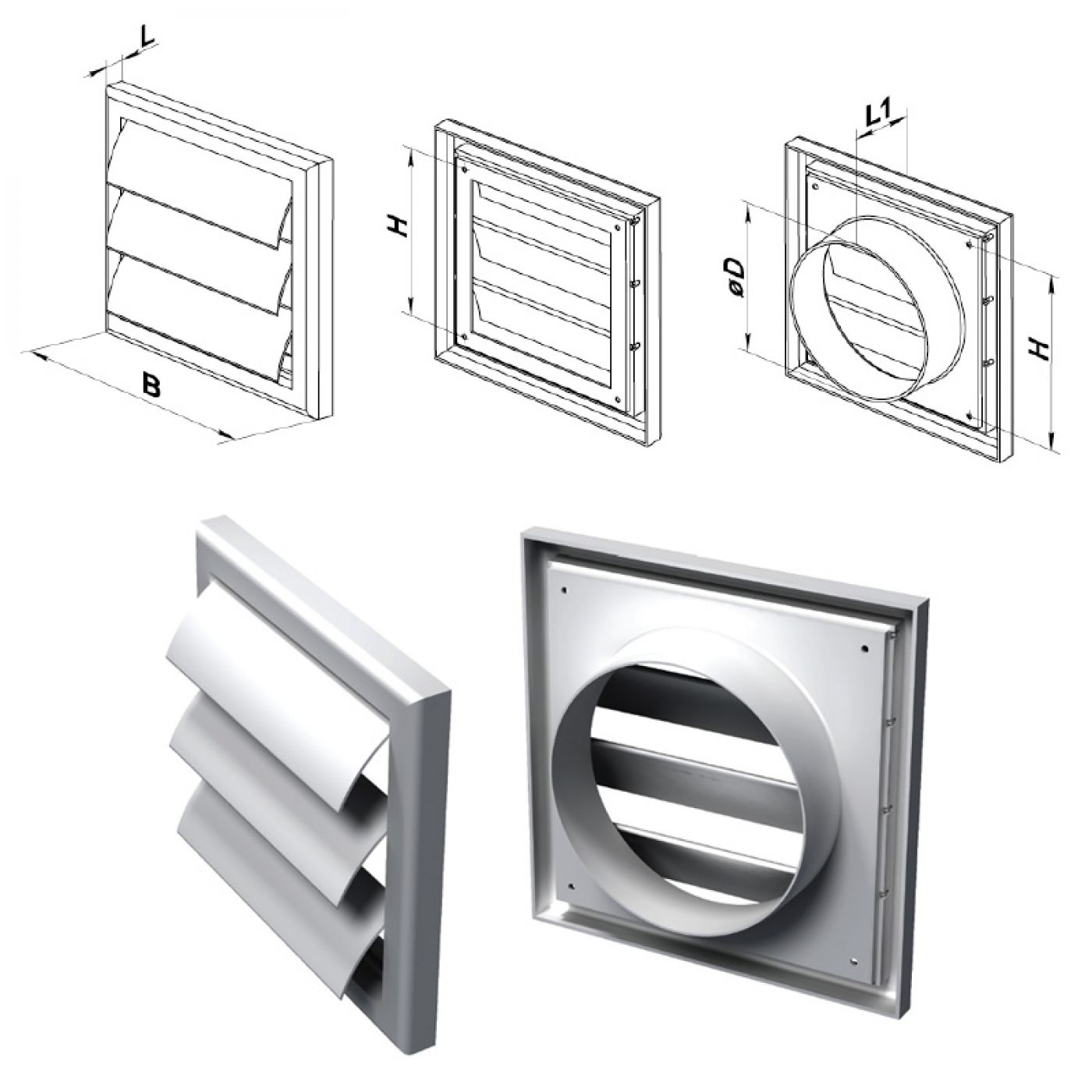 Περσίδα Vents ανοιγοκλεινόμενη Ø100 154 x 154mm σε λευκό χρώμα.