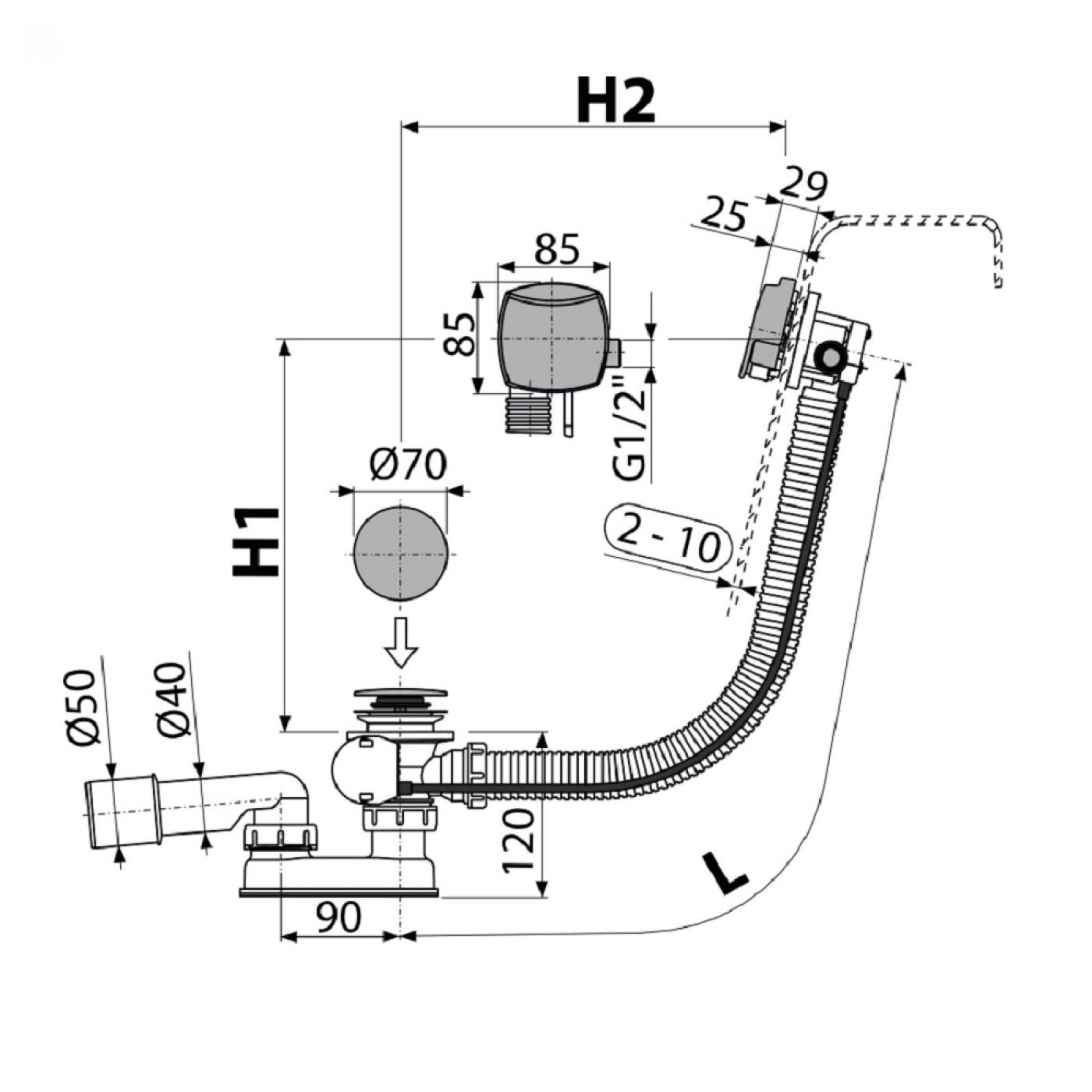 Βαλβίδα λουτρού Alcaplast αυτόματη 57cm.