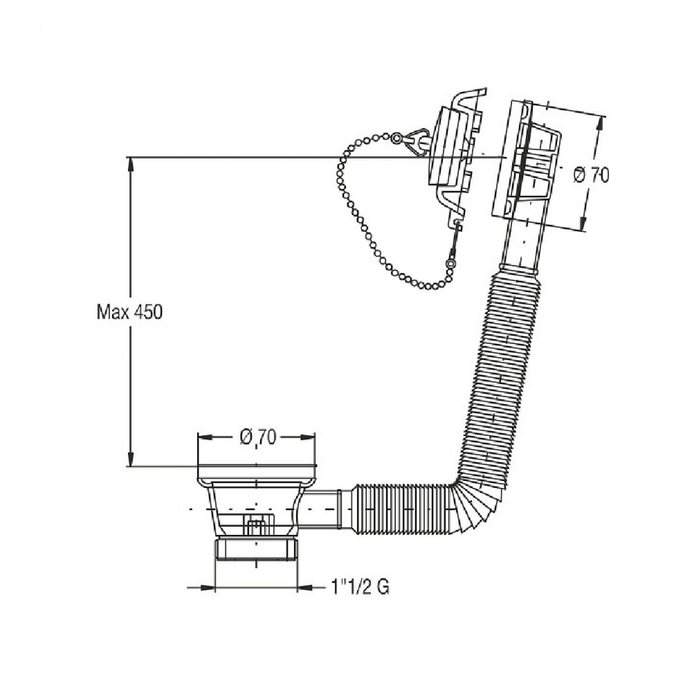 Βαλβίδα μπανιέρας με υπερχείλιση της Bonomini Ø1"½ Ø70mm.
