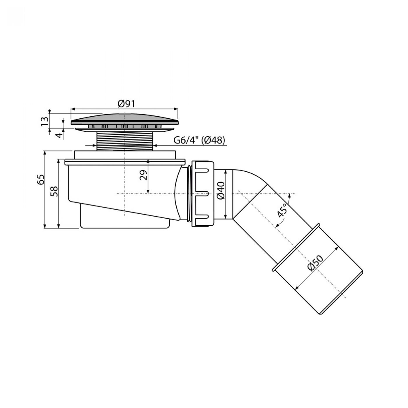 Βαλβίδα ντουζ με σιφώνι της Alcaplast χρωμέ Ø60mm.