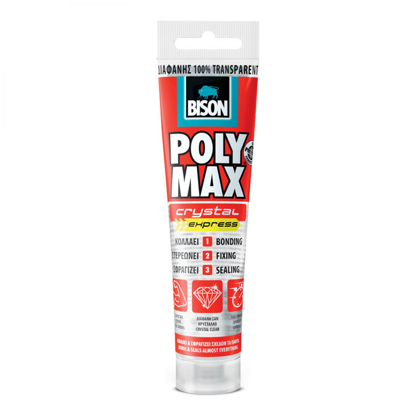 Kατασκευαστική σφραγιστική κόλλα Bison Poly Max Crystal Express διάφανη, σωληνάριο 115g.