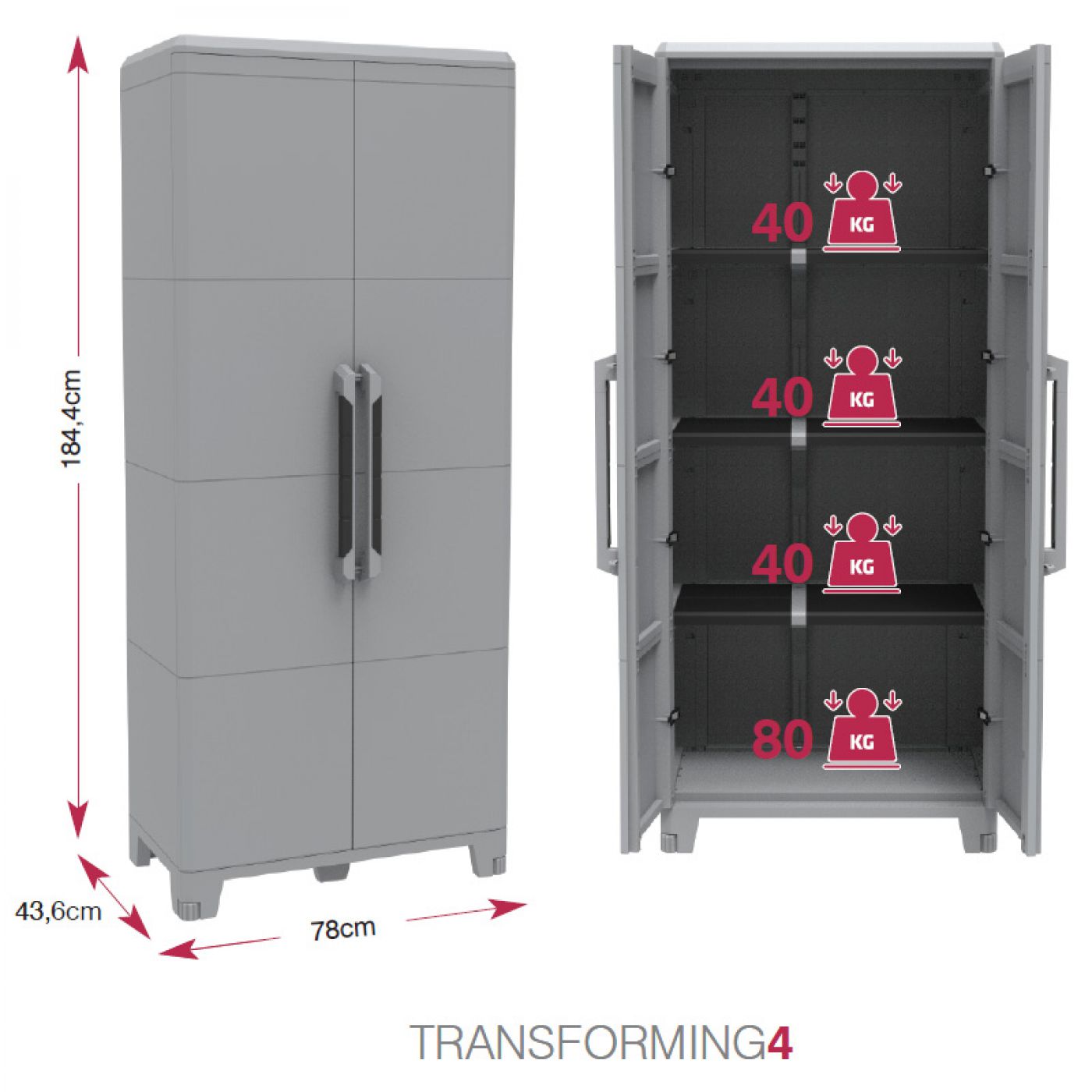 Πλαστική ντουλάπα κήπου Transforming 4, διαστάσεις 78cm x 43,6cm x 184,4cm.