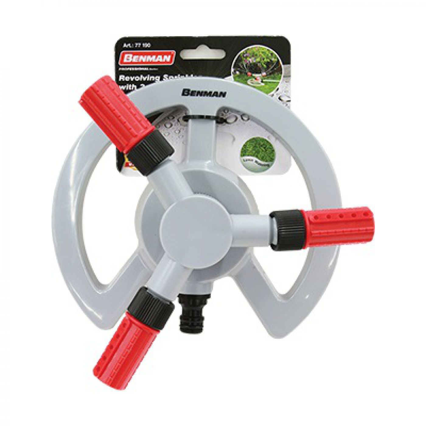 Περιστροφικός ψεκαστήρας ποτίσματος της Benman 3 άκρων με βάση και διάμετρο κάλυψης 12m.