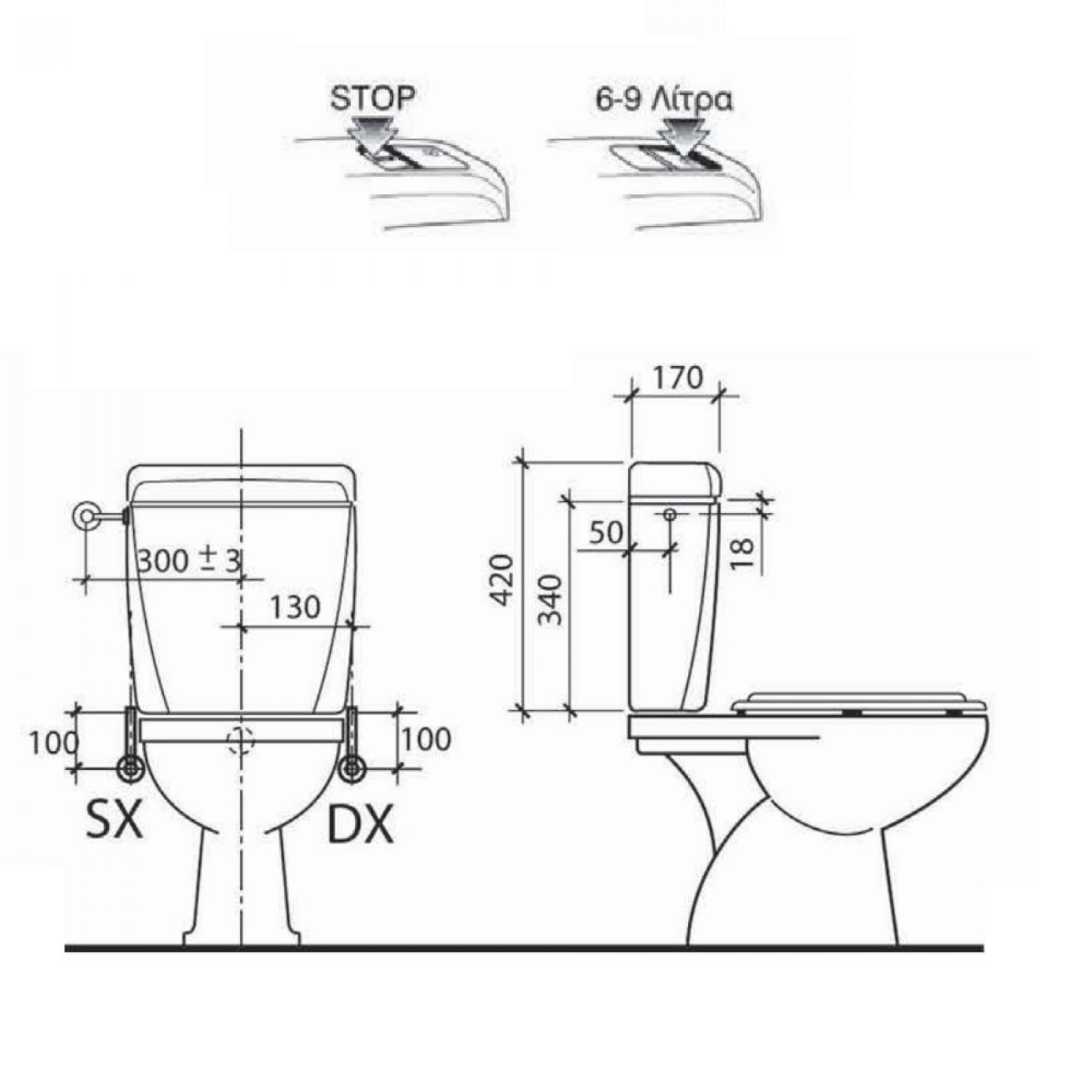 Καζανάκι Solea Επικαθήμενο Πλαστικό 30cm x 17cm x 42cm.