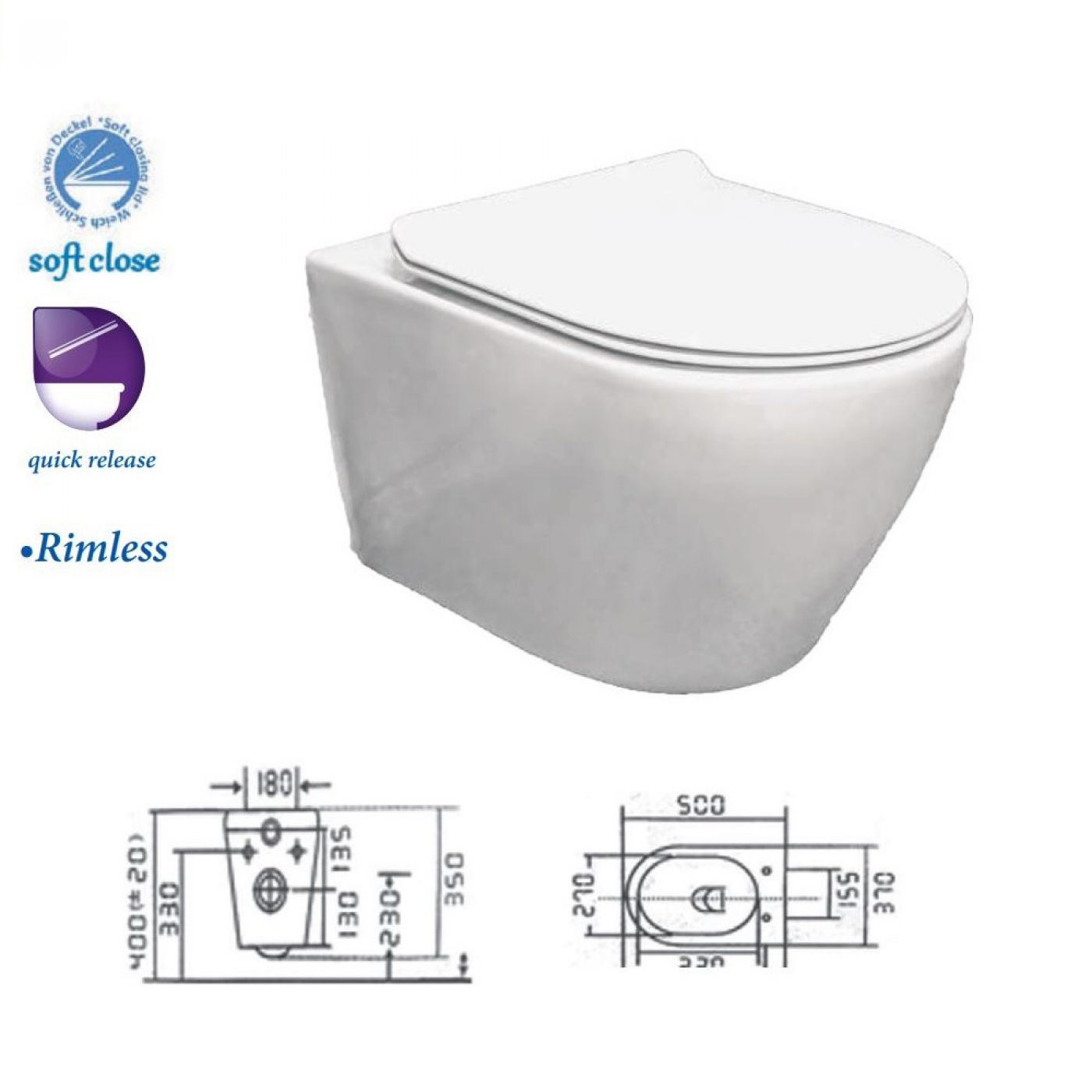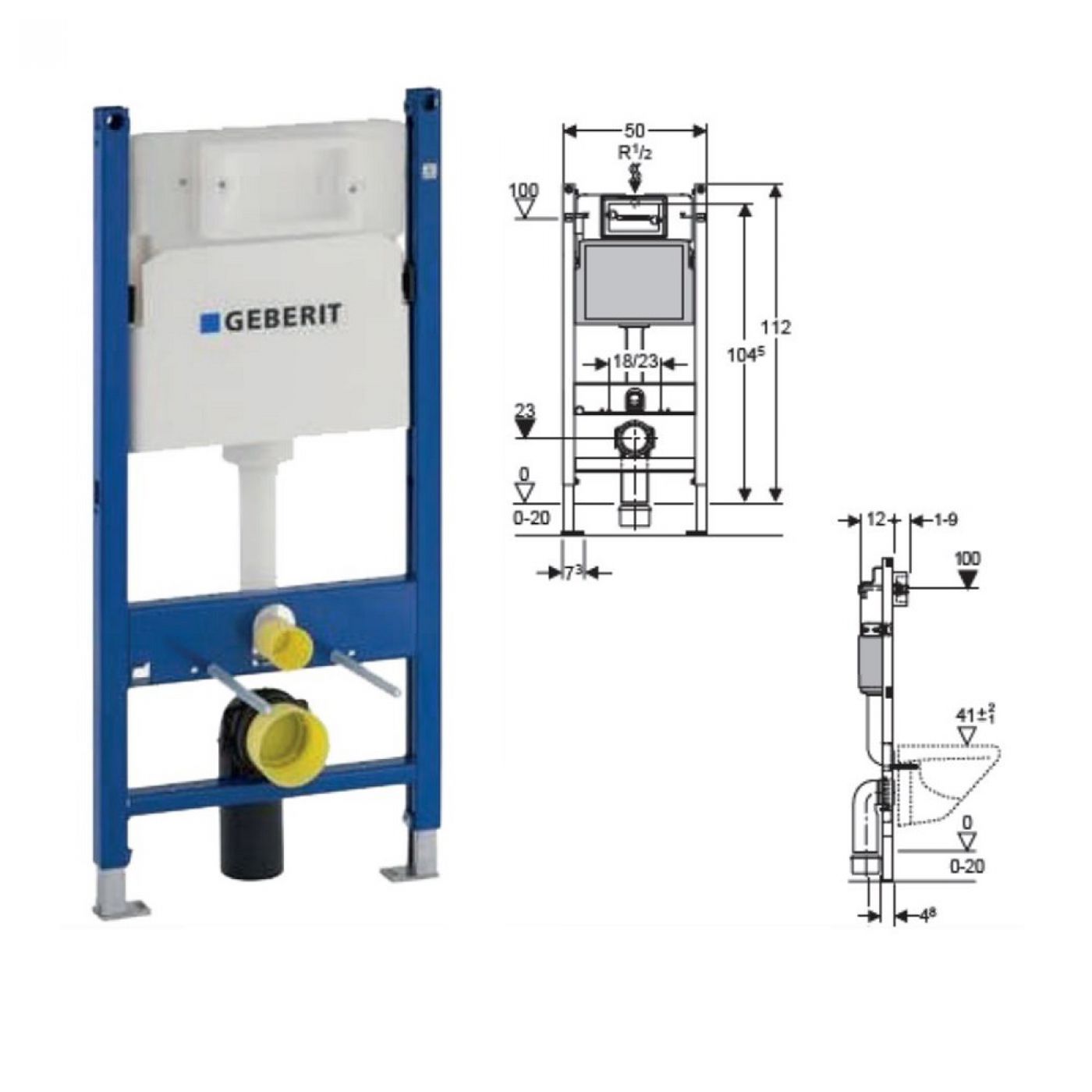 Σετ καζανάκι εντοιχισμού Geberit με κρεμαστή λεκάνη Hanne rimless, πλακέτα και κάλυμμα soft close.