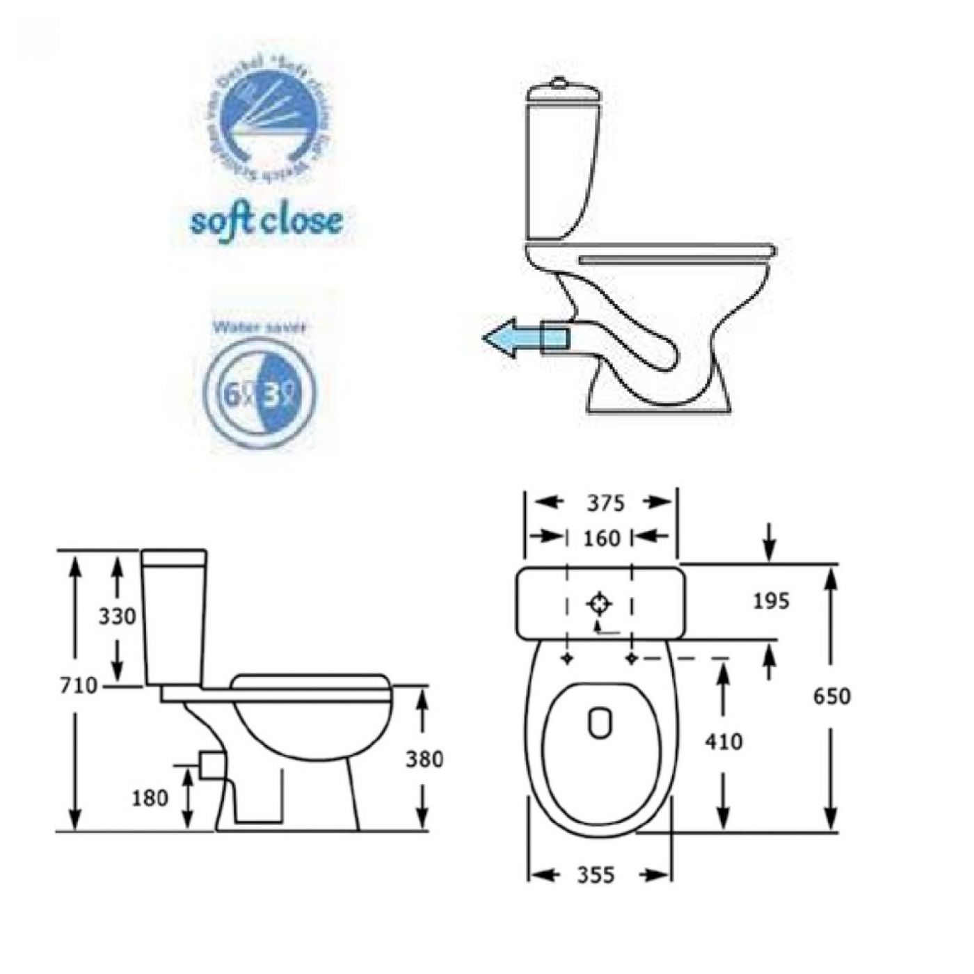 Περιλαμβάνει λεκάνη, καζανάκι, μηχανισμό, καπάκι soft close.