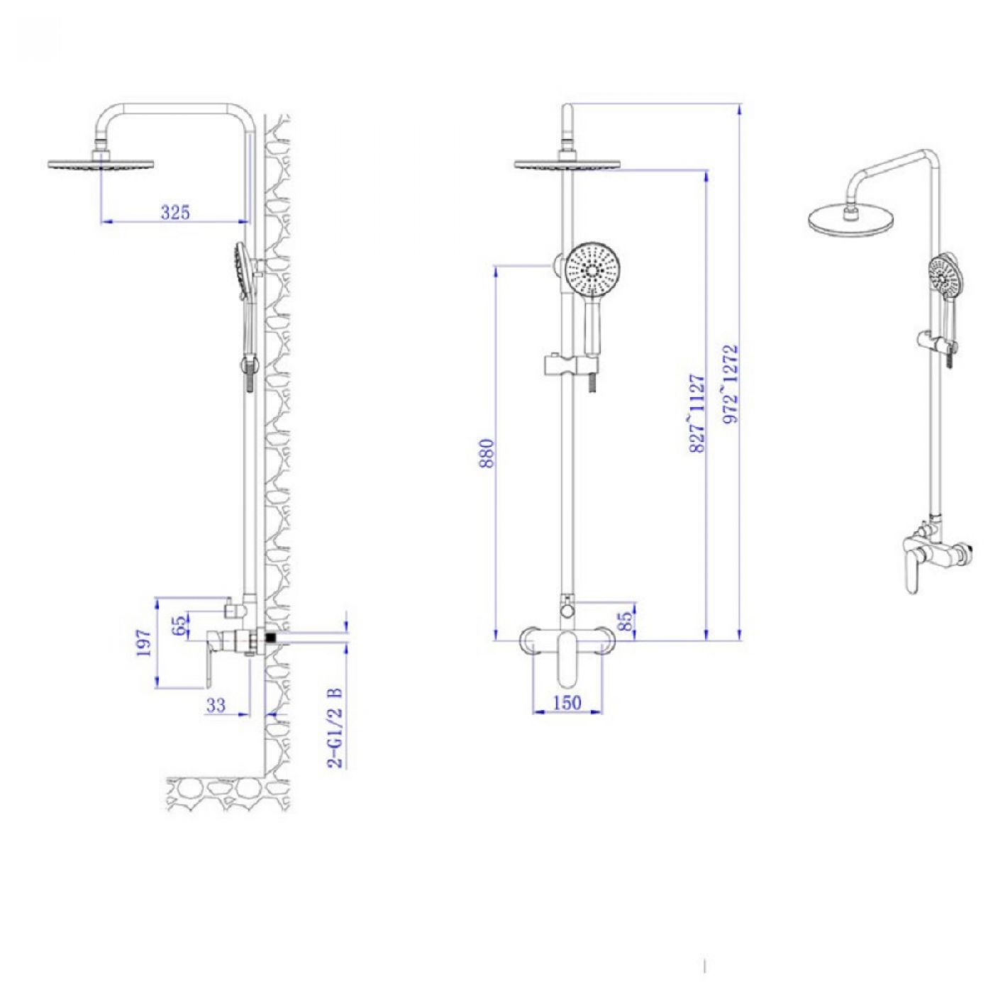 Σύστημα ντουζ Inter Ceramic Siena χρωμέ με στήλη και μπαταρία.