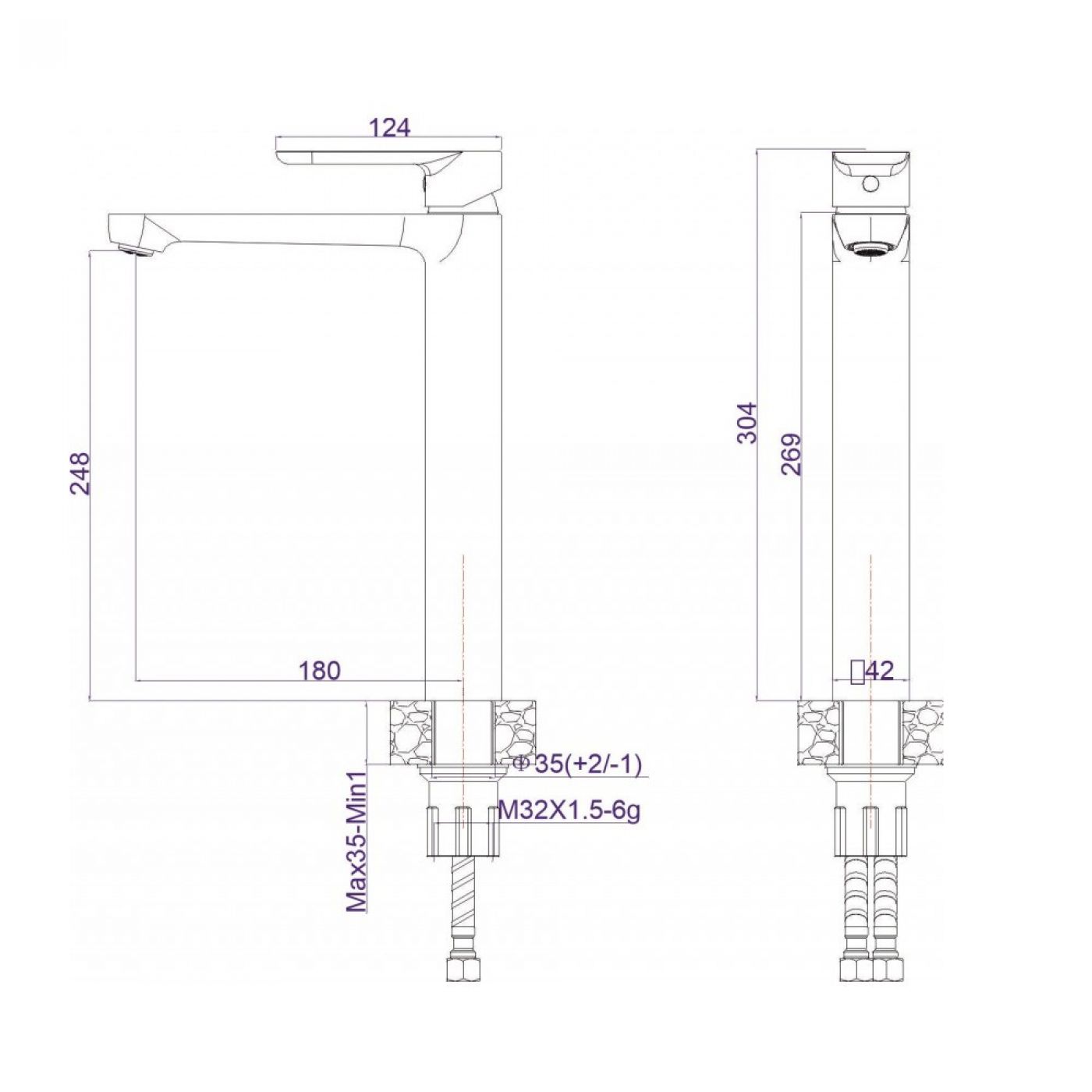 Μπαταρία νιπτήρα Inter Ceramic Siena χρωμέ ψηλή.