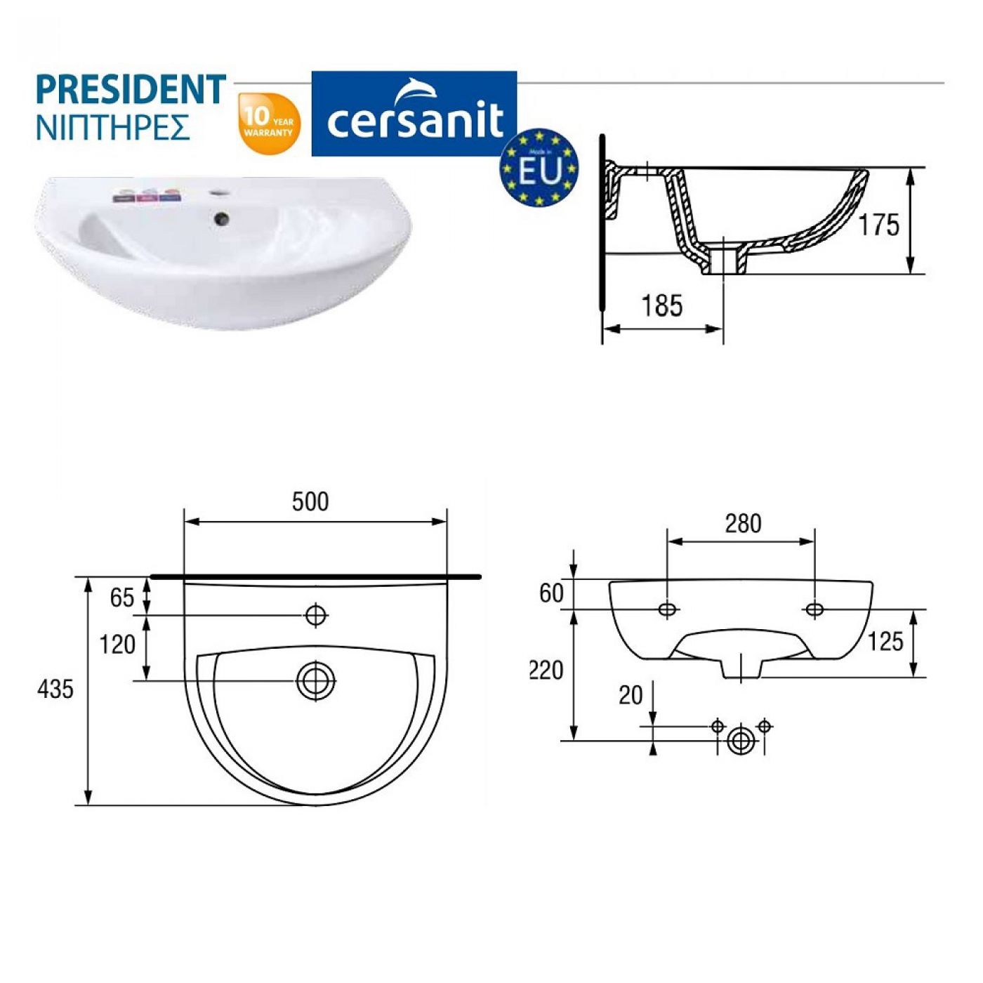 Nιπτήρας Cerasanit President κρεμαστός λευκός 500 x 435 mm.