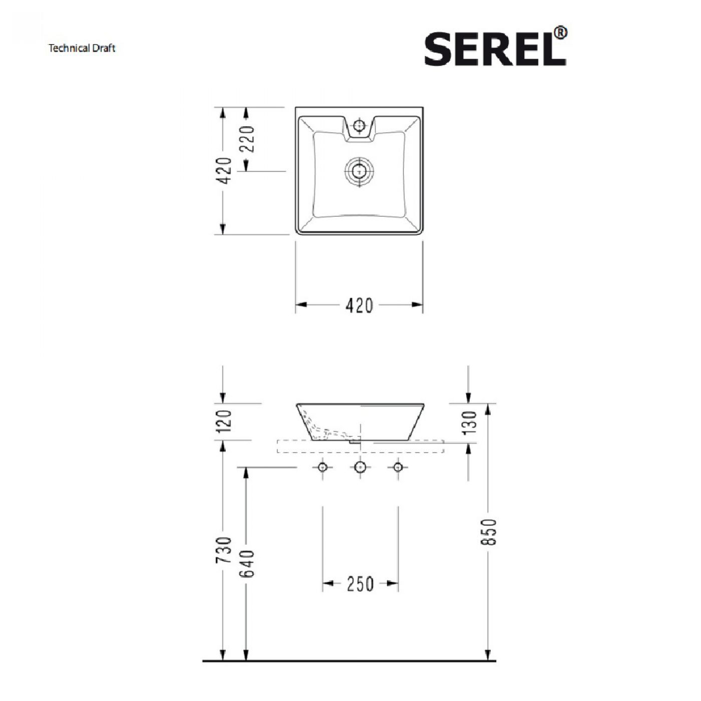 Νιπτήρας επιτραπέζιος Serel χωρίς υπερχείλιση με βάθος γούρνας 12cm.