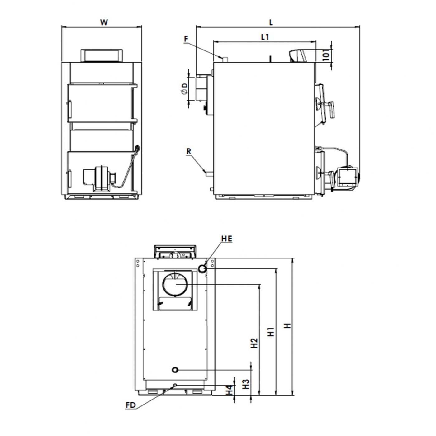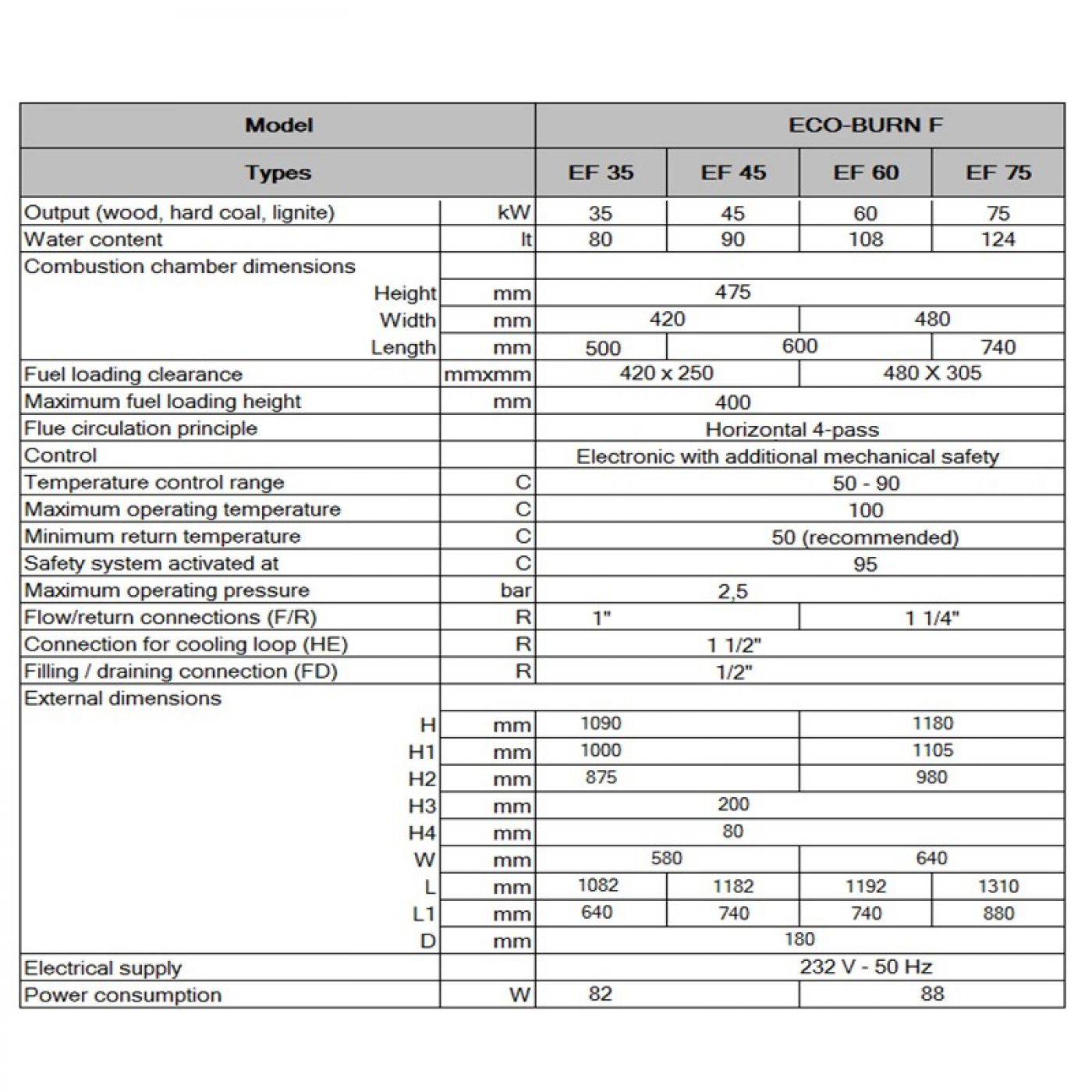 Λέβητας ξύλου Eco Burn F EF-35 με πίνακα και ανεμιστήρα 4 διαδρομών 35Kw.