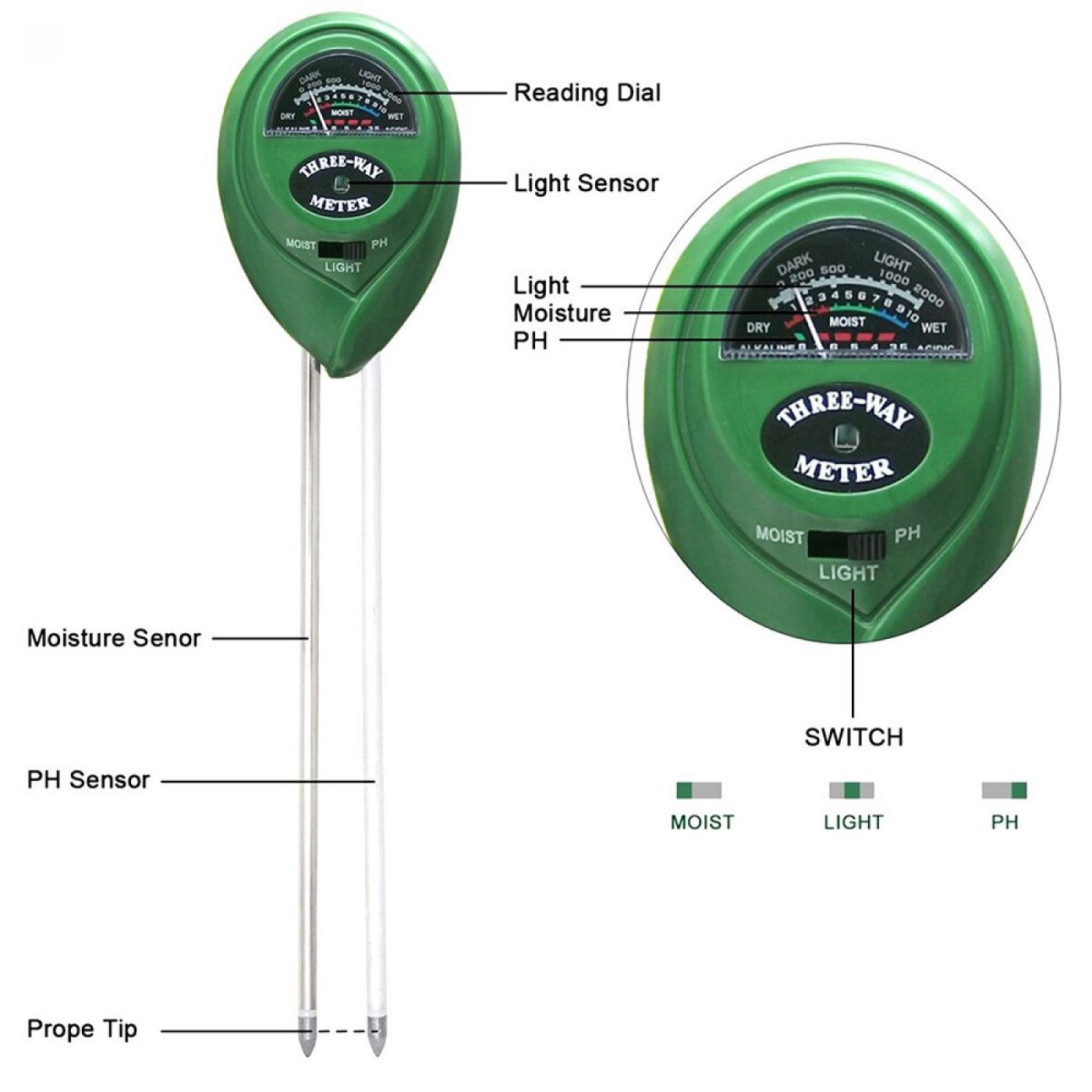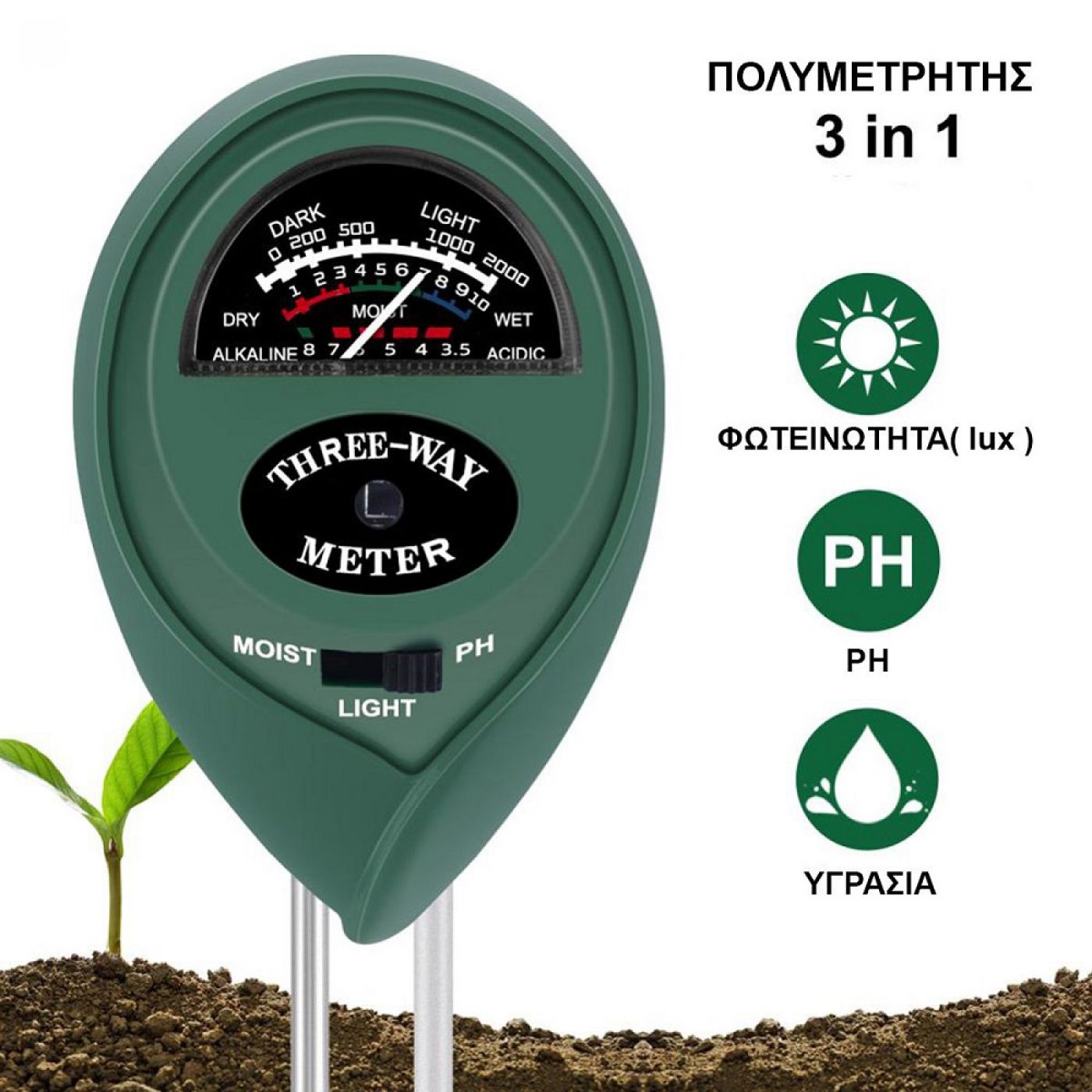 Ψηφιακός πολυμετρητής 3 σε 1 για PH, υγρασία, φωτεινότητας.