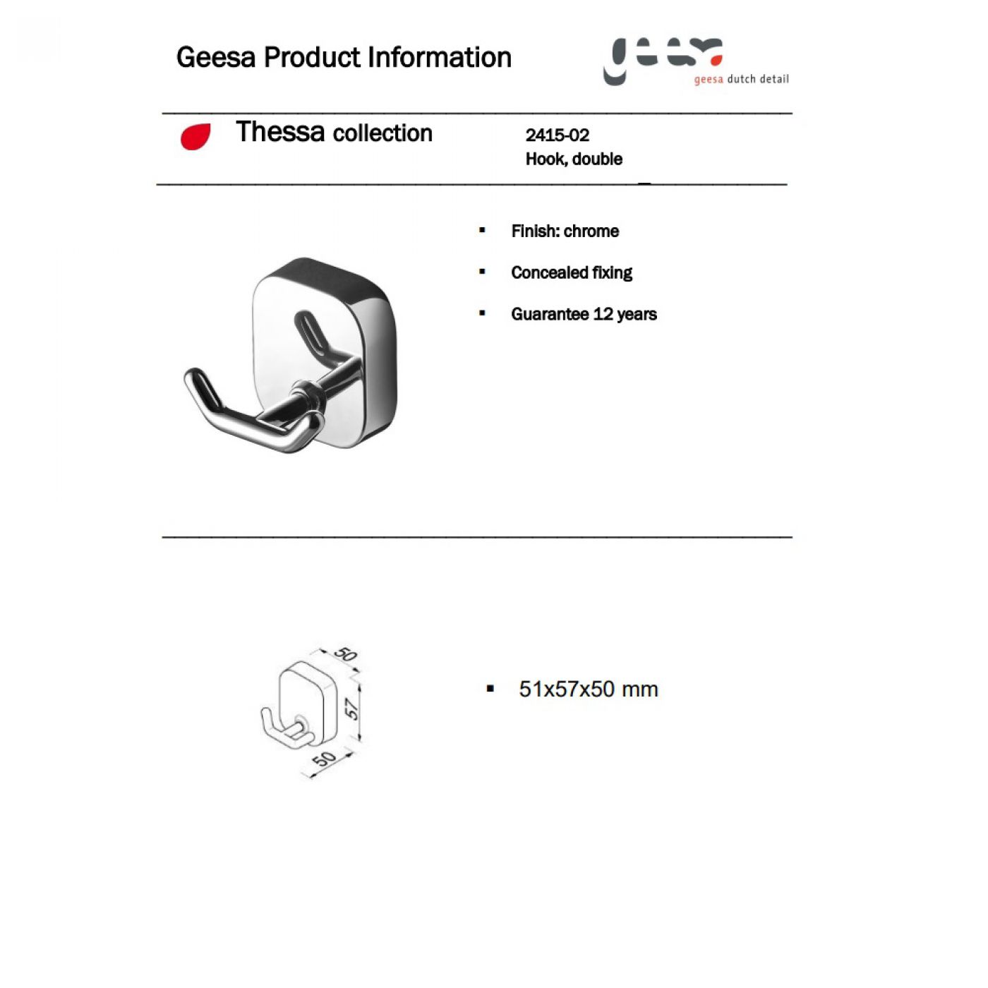 Άγκιστρο διπλό Thessa της Geesa χρωμέ 5cm x 5cm x 5,7cm.