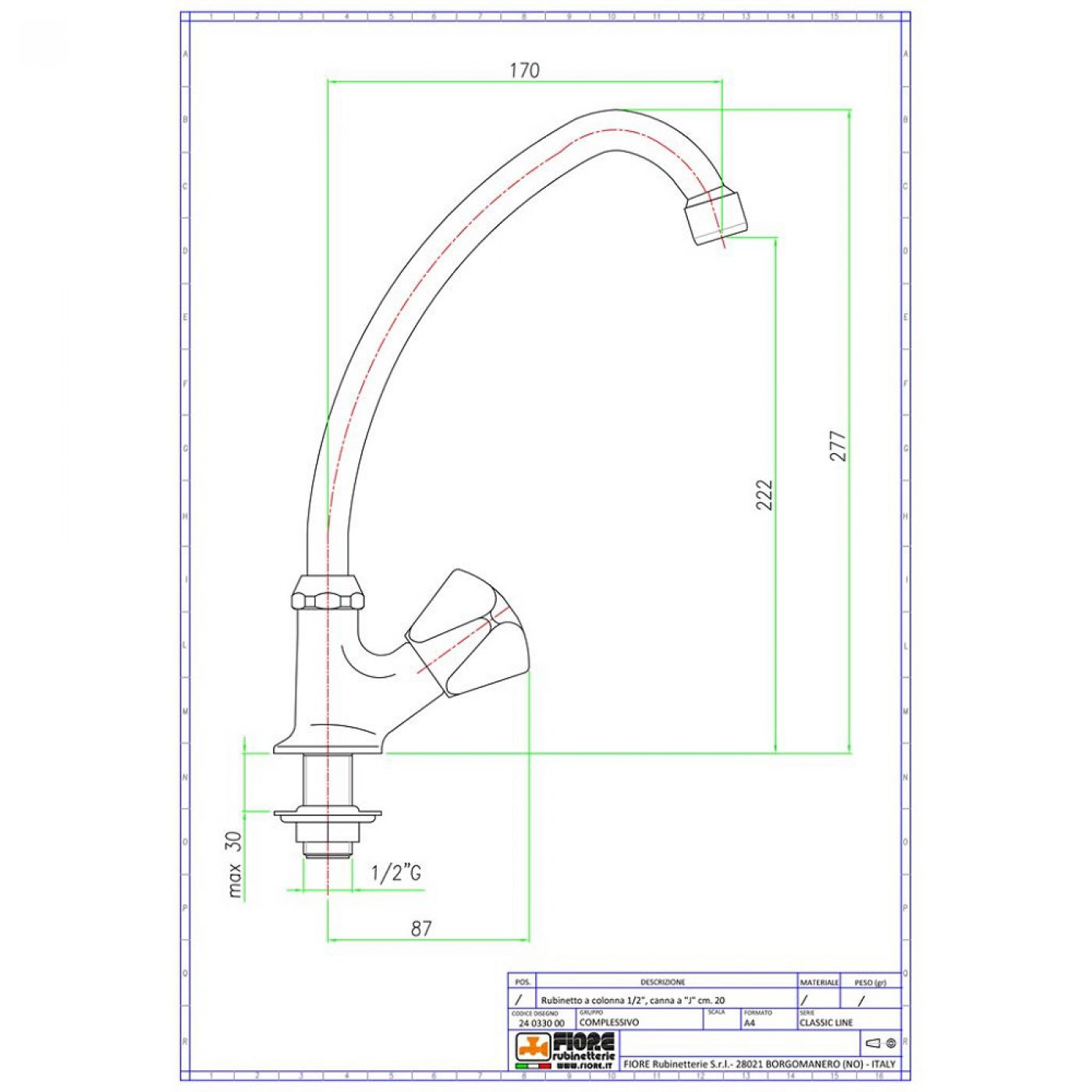 Περιστρεφόμενη μπαταρία πάγκου Fiore Classic Line μονή 20cm.