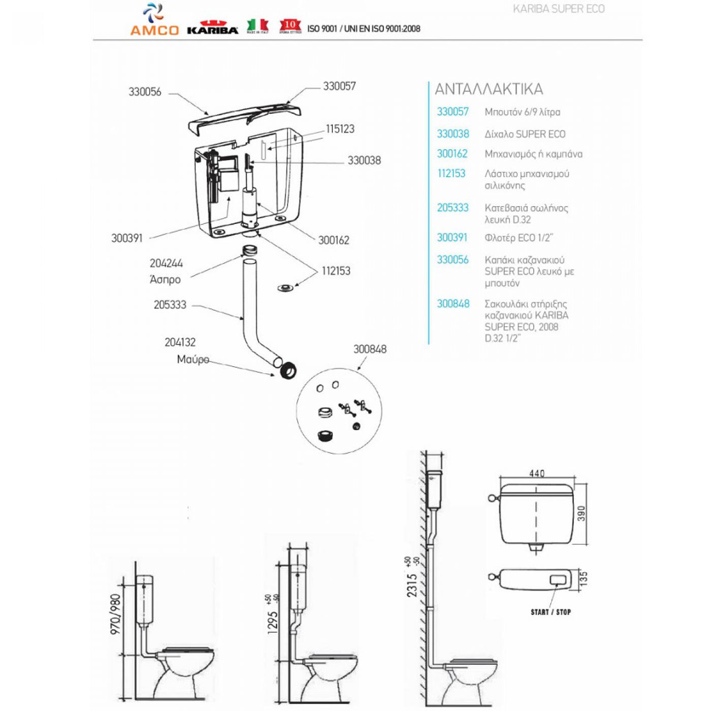 Καζανάκι πλάτης επιτοίχιο Super Eco της Kariba σε λευκό χρώμα.