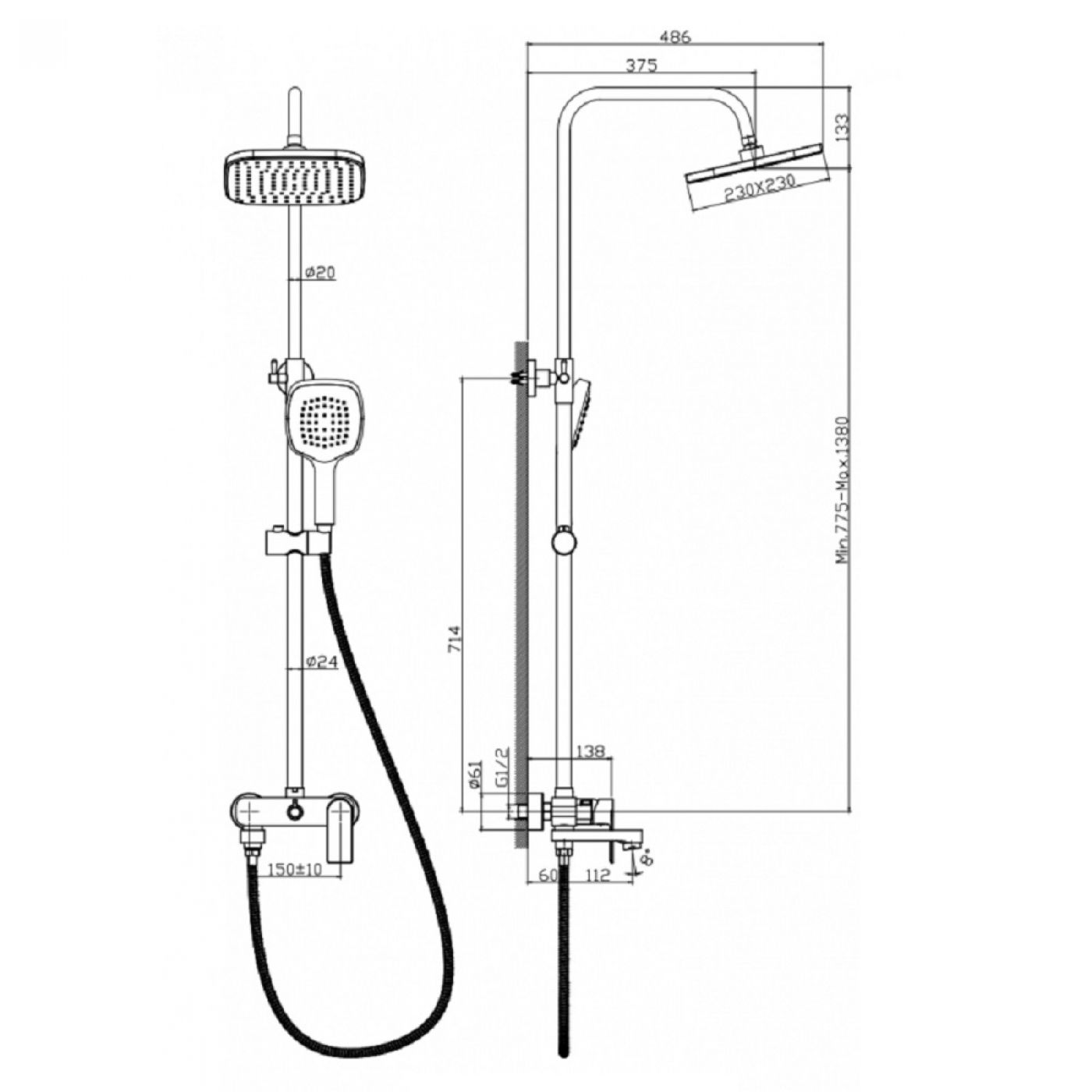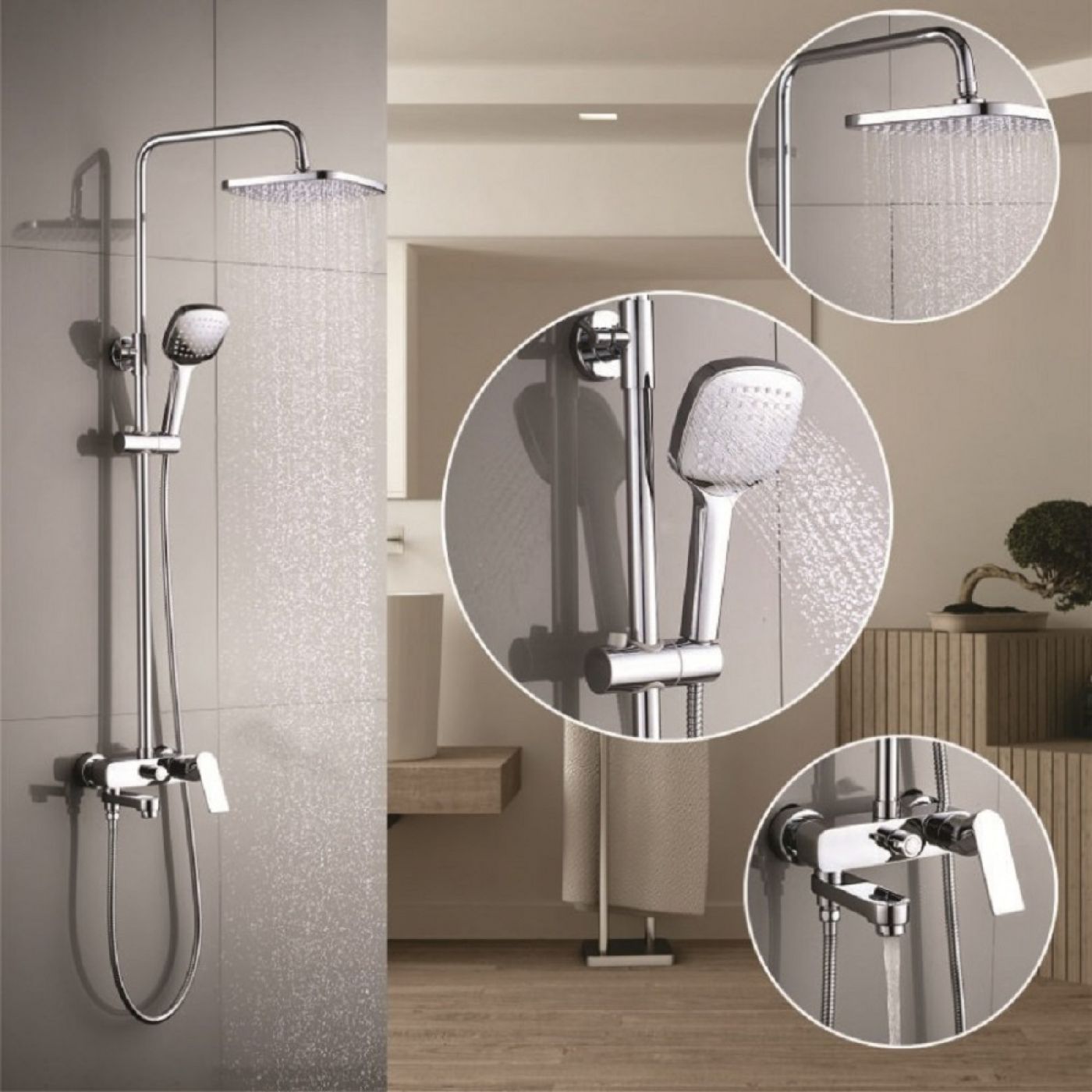 Στήλη ντουζ Inter Ceramic Elmira χρωμέ με στήλη και μπαταρία.
