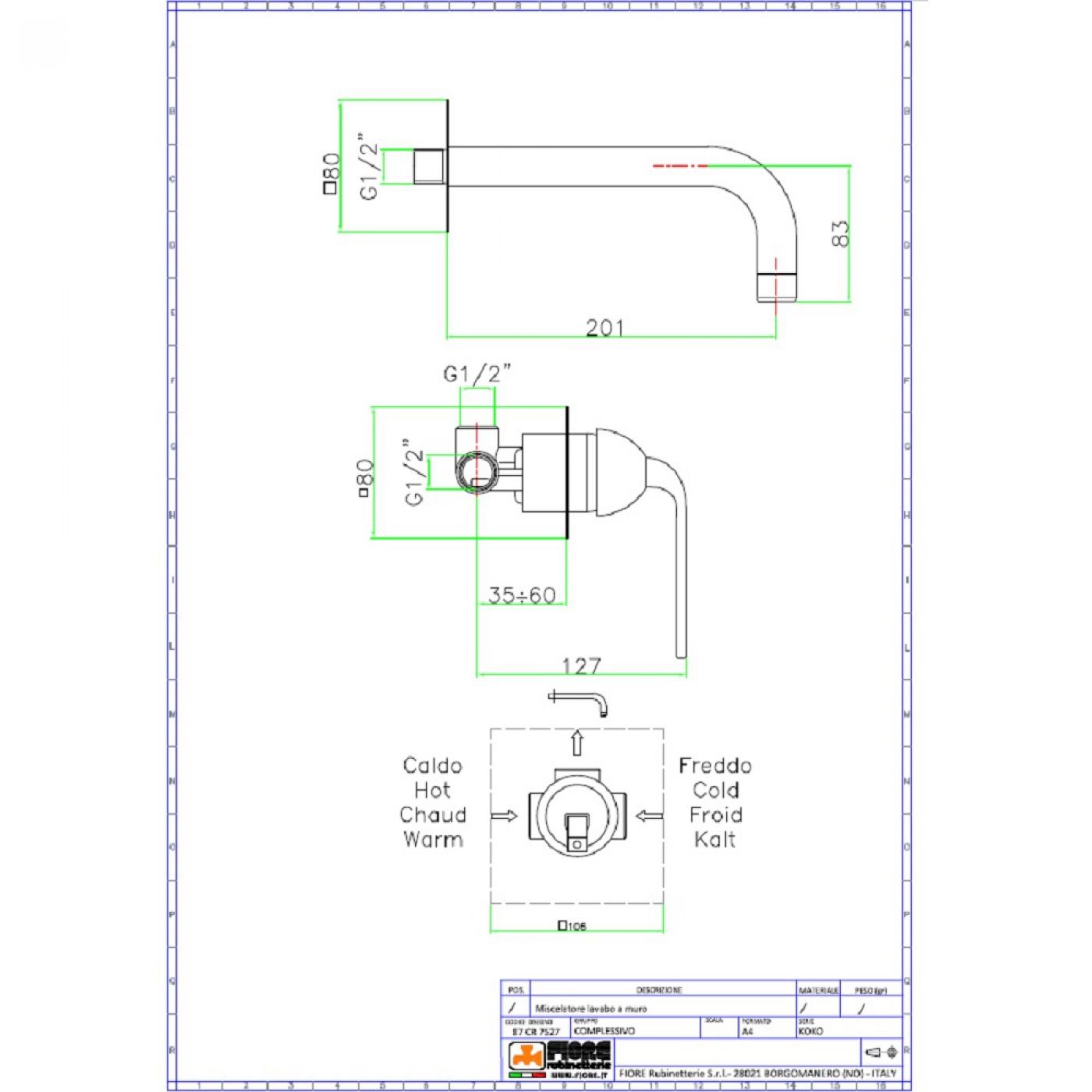 Εντοιχιζόμενη αναμεικτική μπαταρία νιπτήρα Kevon της Fiore πλήρες σετ.