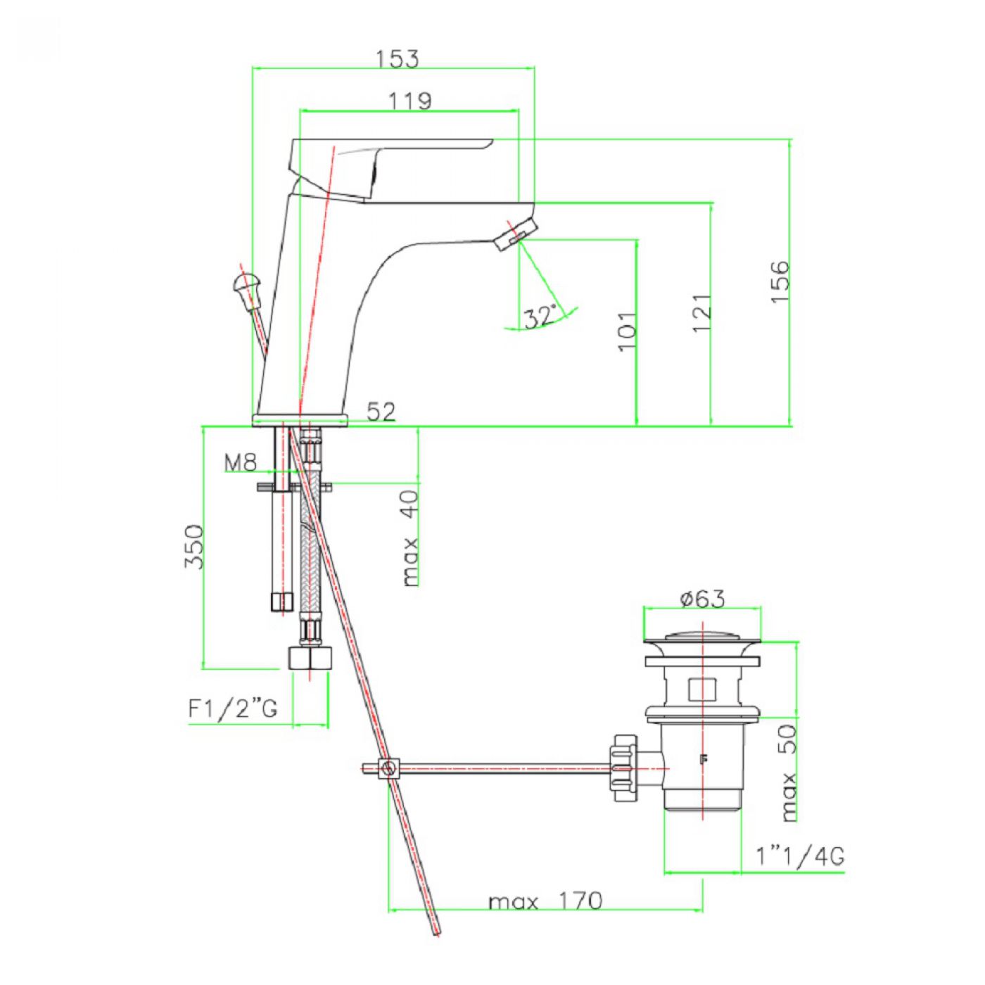 Αναμεικτική μπαταρία νιπτήρα Kevon της Fiore από ορείχαλκο.