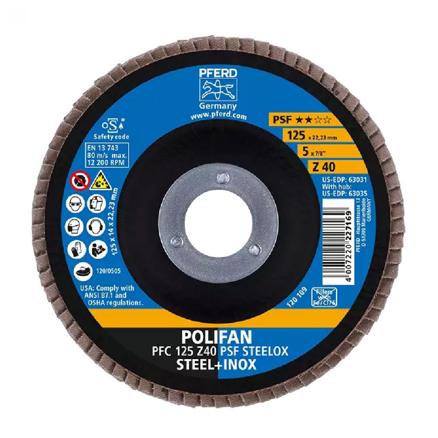 Δίσκος λείανσης βεντάλια Pferd PSF Steelox Ø 125mm μέγεθος κόκκου 40.