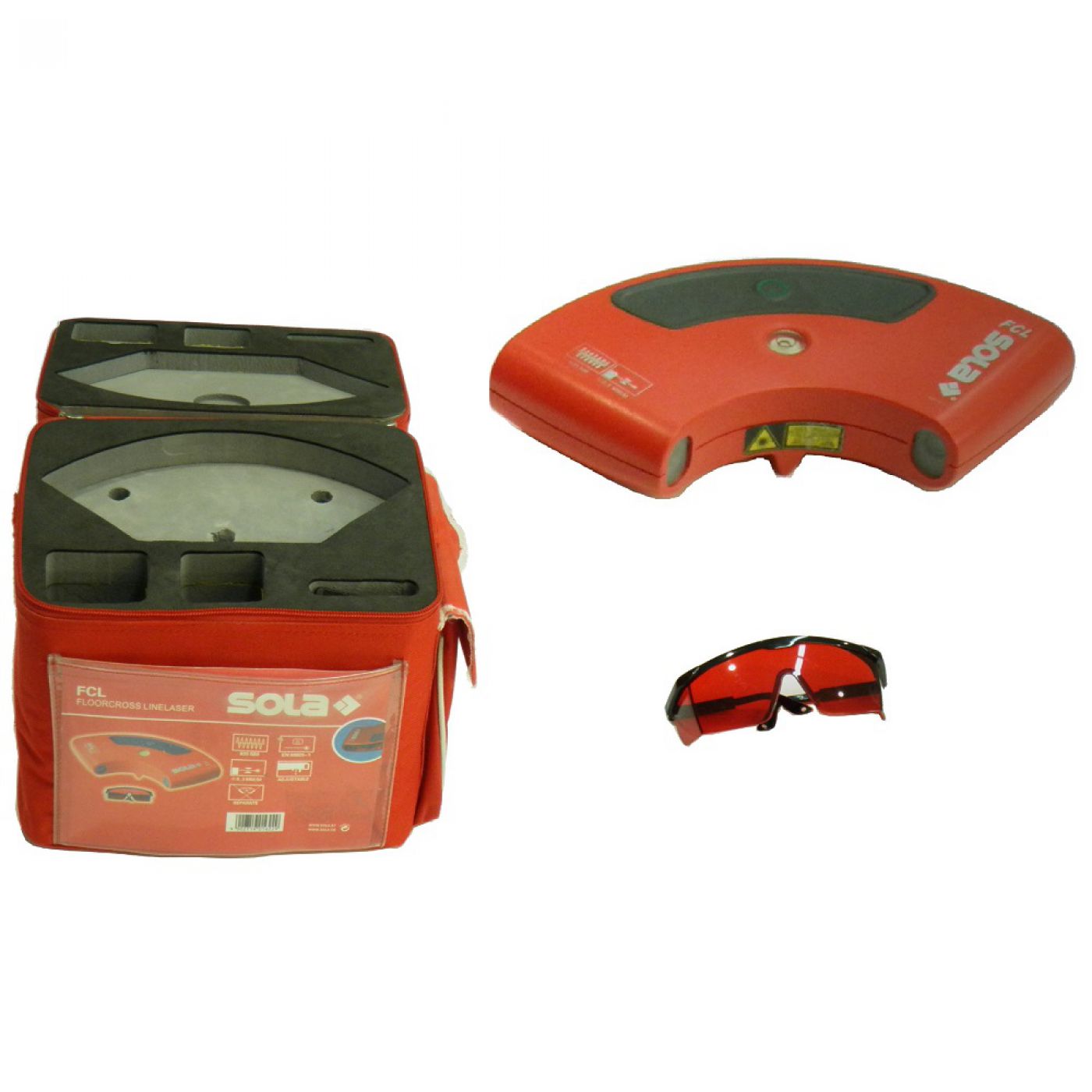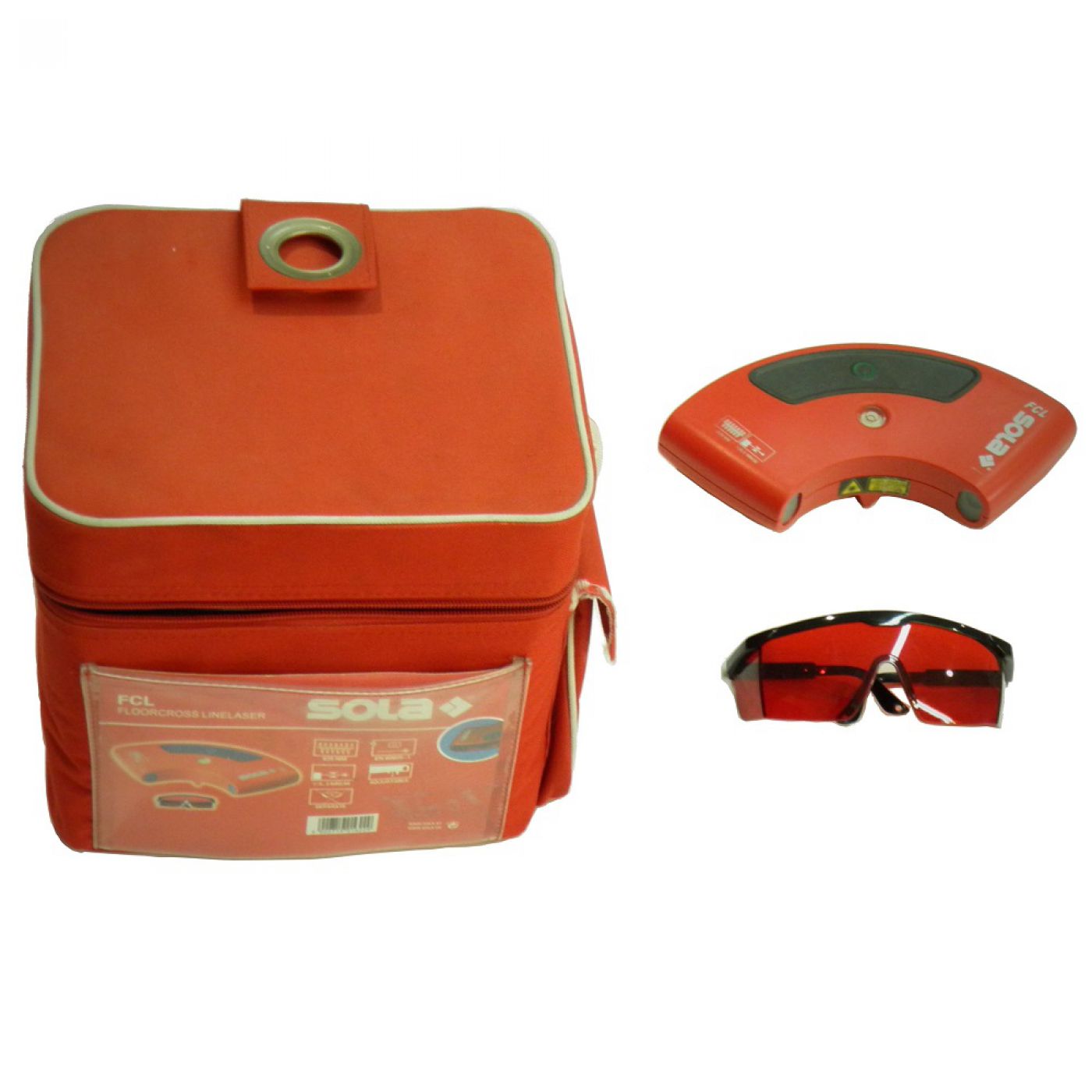 Σετ βαλιτσάκι Sola Floorcross Linelaser με αλφάδι laser και προστατευτικά γυαλιά.