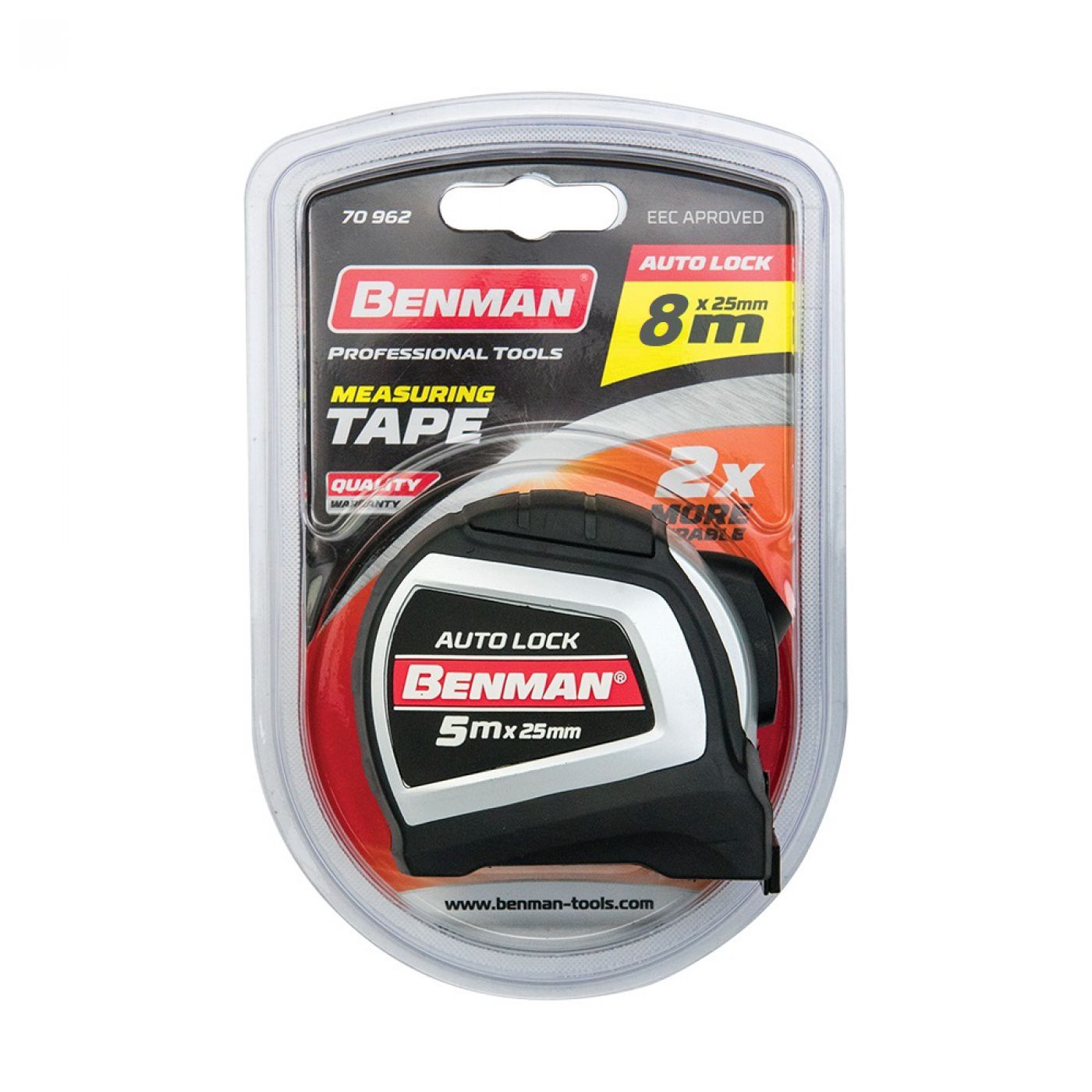 Μέτρο ρολό μαγνητικό Auto Lock της Benman 8m x 25mm.