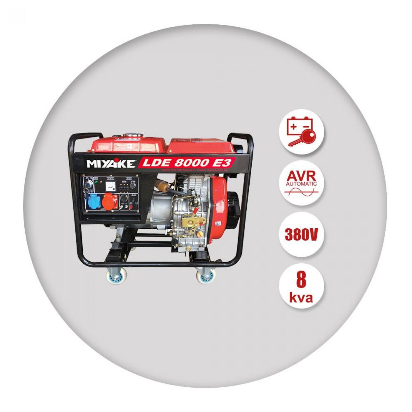 Γεννήτρια πετρελαίου ανοικτού τύπου LDE 8000 E3 της Miyake με μίζα και μπαταρία 12Hp 8kVA/380V.