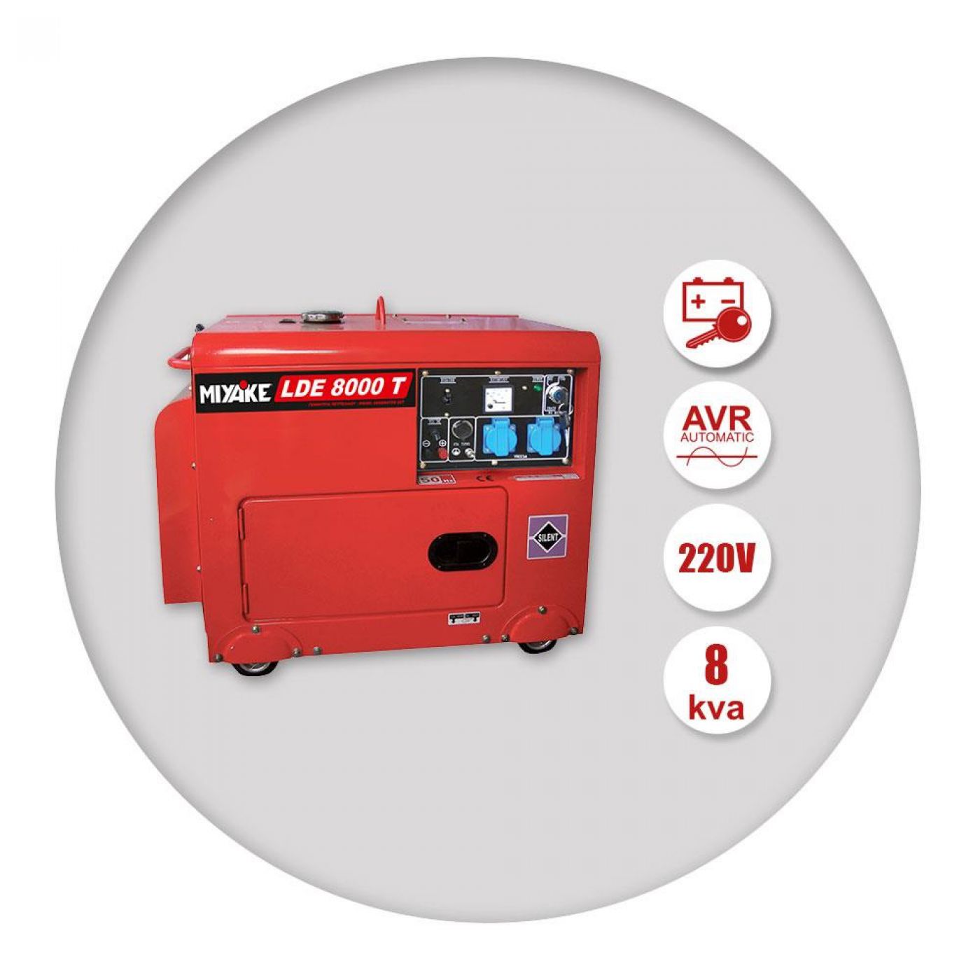 Γεννήτρια πετρελαίου κλειστού τύπου LDE 8000 Τ της Miyake χαμηλού θορύβου, με μίζα και μπαταρία 12Hp 8kVA/220V.