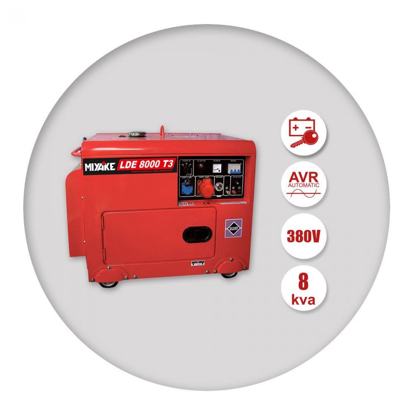 Γεννήτρια πετρελαίου κλειστού τύπου LDE 8000 Τ3 της Miyake χαμηλού θορύβου, με μίζα και μπαταρία 12Hp 8kVA/380V.