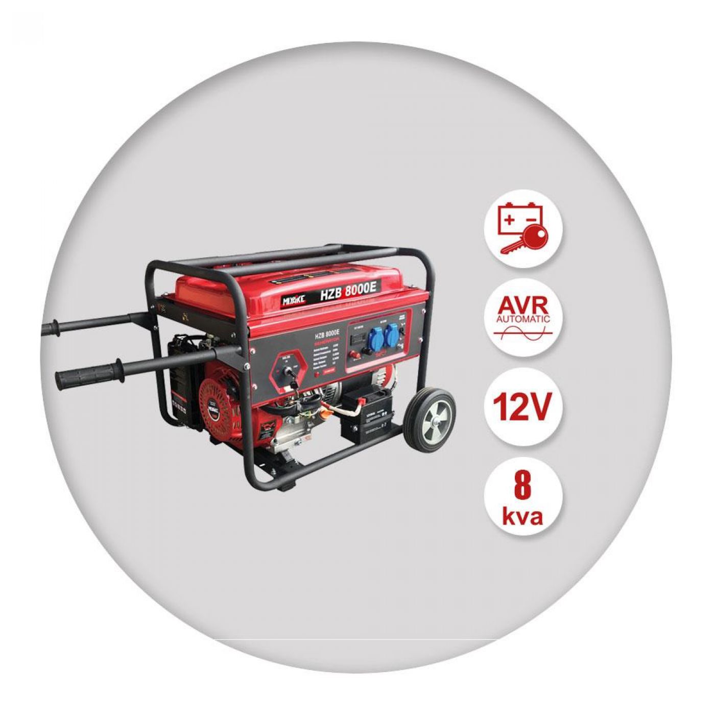 Γεννήτρια βενζίνης μονοφασική με μίζα και μπαταρία HZB 8000 Ε της Miyake 16Hp.