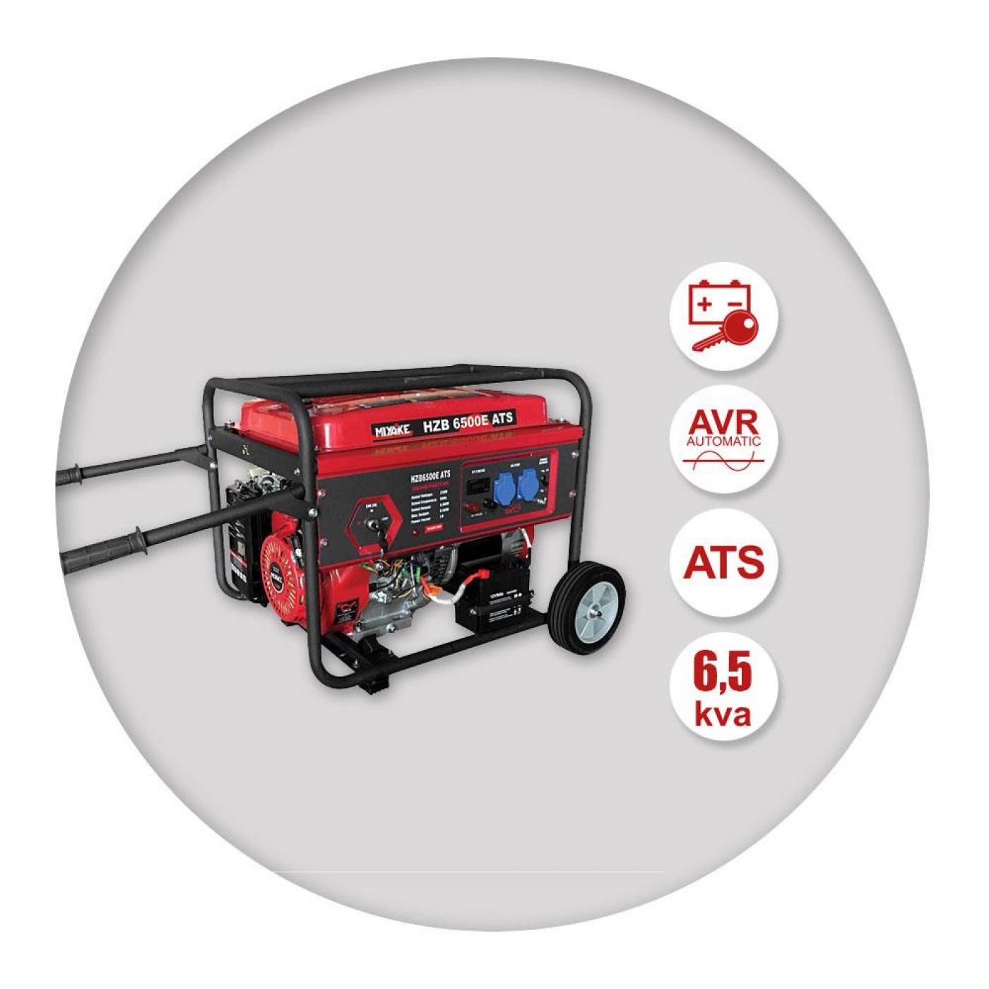 Γεννήτρια βενζίνης αυτόματης ζεύξης HZB 6500 ATS της Miyake εκκίνηση με μίζα και μπαταρία, 13Hp.