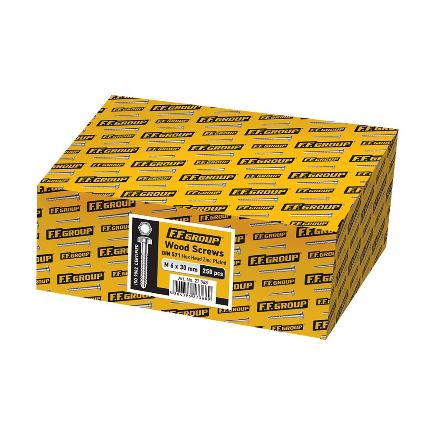 Στριφώνι εξάγωνο γαλβανιζέ CR3+ DIN 571 της FF Group 6mm x 40mm 250 τεμάχια.
