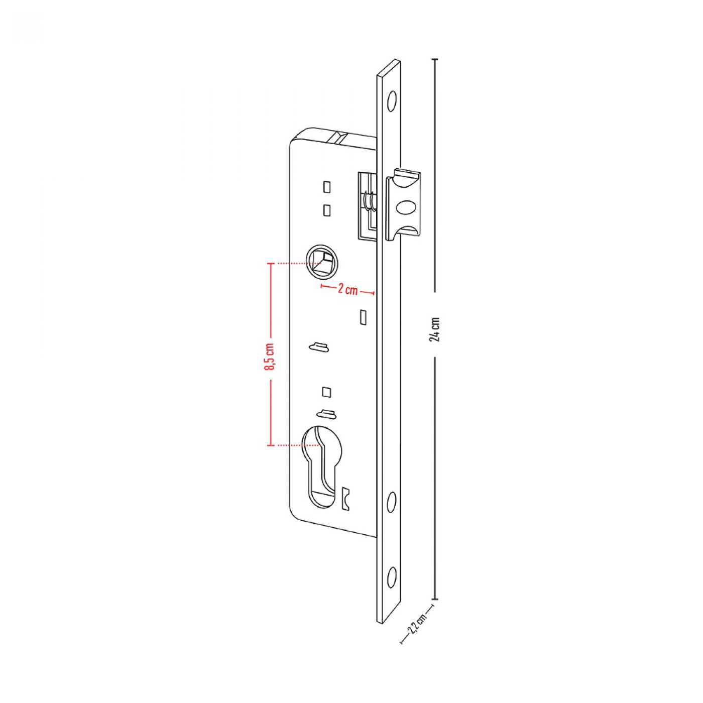 Κλειδαριά Hugo κυλίνδρου για μεταλλική πόρτα, στενή 20/85mm.